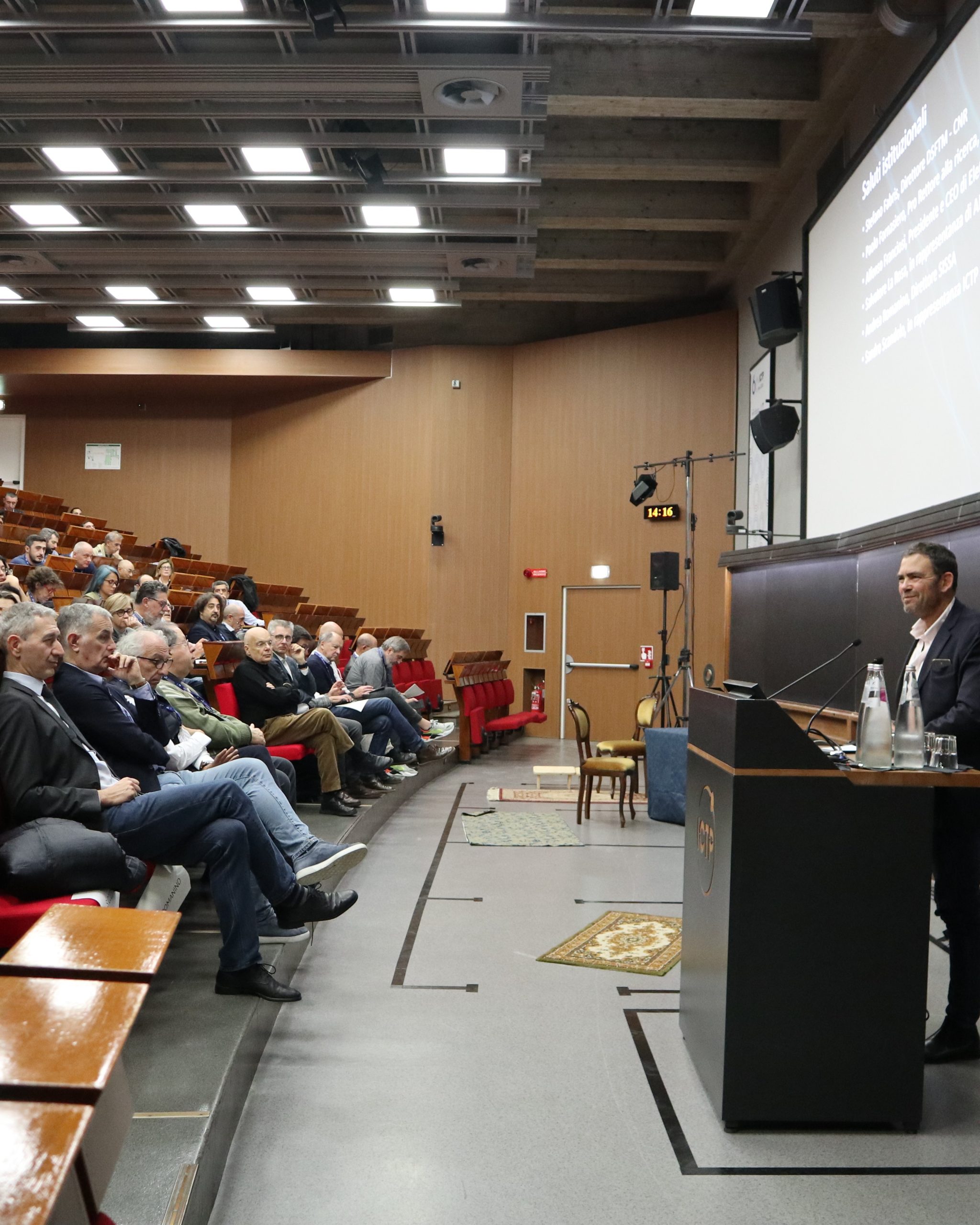 La prima giornata ha visto i saluti istituzionali di Stefano Fabris (Direttore DSFTM-CNR), Paolo Fornasiero (Pro-Rettore alla Ricerca, Università di Trieste), Alfonso Franciosi (Presidente e CEO di Elettra Sincrotrone), Salvatore La Rosa (AREA Science Park), Andrea Romanino (Direttore SISSA) e Sandro Scandolo (ICTP). Inoltre, è stata celebrata una grande eccellenza scientifica: Stefano Baroni, professore SISSA e associato IOM, ha ricevuto il Rahman Prize 2026 per la fisica computazionale.